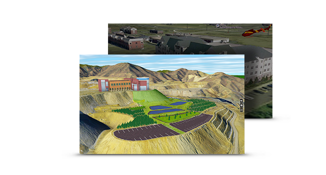 By overlaying a wide range of geospatial data on actual terrain, you can create easy-to-understand, 3D worlds that allow all concerned parties to easily visualize and evaluate the aesthetic, practical, and environmental impacts of a proposed project or natural event.